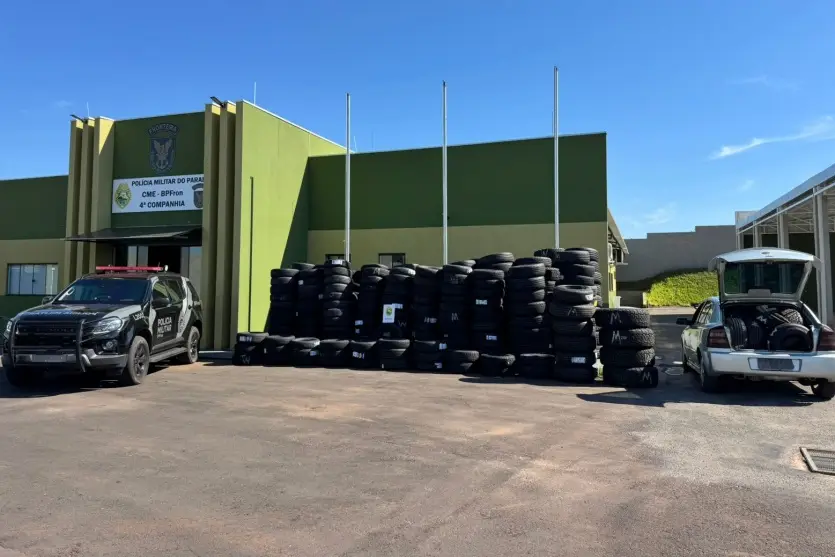 A Polícia Militar do Paraná, por meio do Batalhão de Polícia de Fronteira (BPFron), apreendeu um veículo e uma grande quantidade de pneus sem documentação legal em um comércio no município de Umuarama. A ação ocorreu no último sábado (24), durante a Operação Protetor, que fiscaliza o transporte de mercadorias ilegais na região.