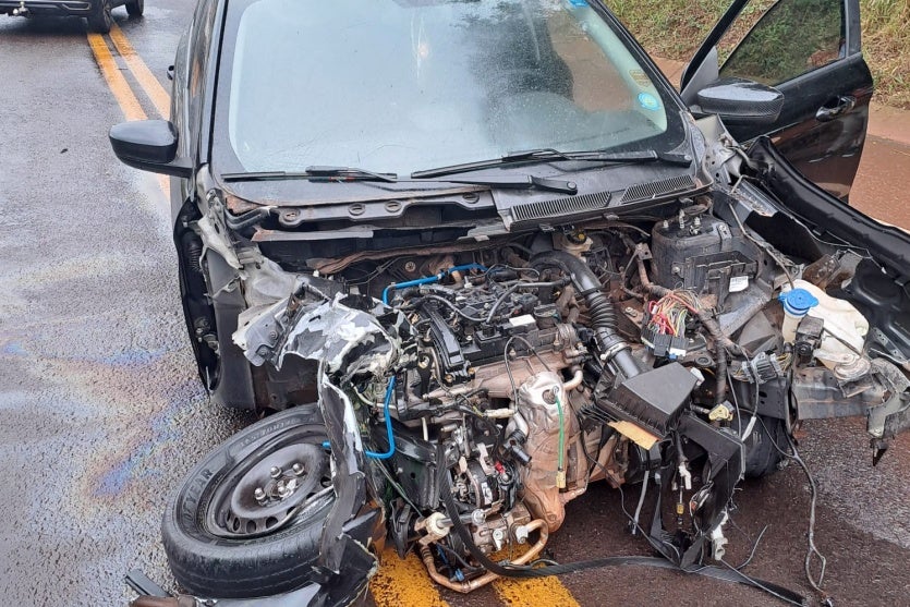 O motorista do caminhão não sofreu ferimentos. Já o veículo de passeio teve danos significativos, enquanto o caminhão sofreu apenas pequenas avarias.