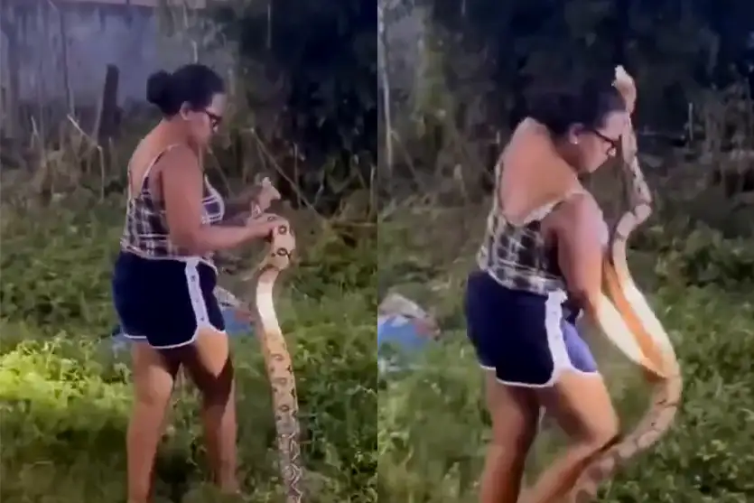 A cena chamou a atenção não só pela coragem, mas também pela naturalidade com que a moradora realizou o feito. Segundo relatos, uma vizinha a chamou ao perceber a presença da jiboia em um terreno próximo a residências. A mulher pega cobra como se fosse uma tarefa comum, levando-a para longe da área habitada.