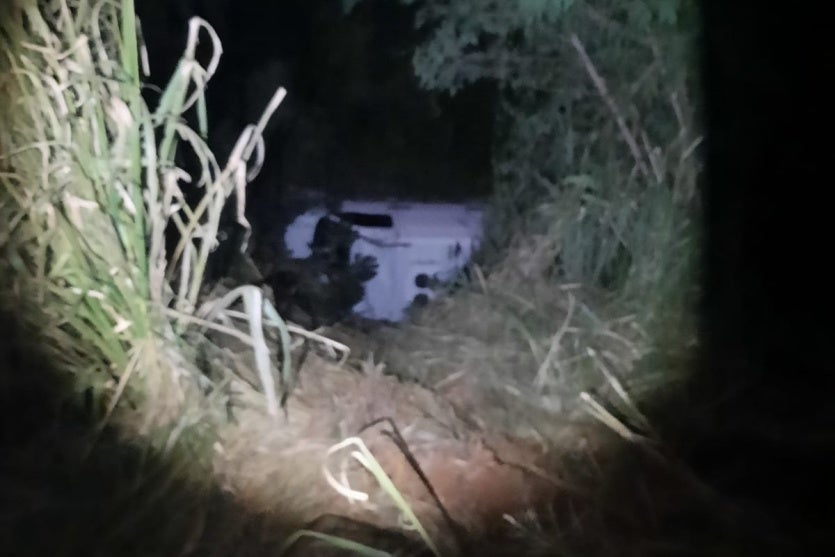 O veículo caiu de um barranco e parou a cerca de 13 metros da margem da estrada