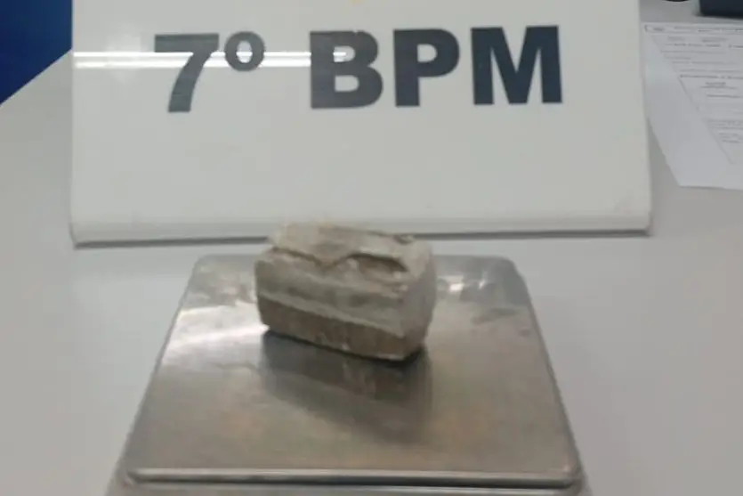 Durante a revista pessoal, foi encontrada no bolso da blusa do motociclista uma porção de maconha, pesando 16,8 gramas, embalada em plástico filme. O homem assumiu ser usuário da substância.