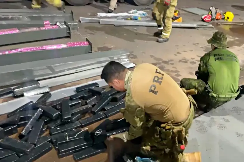 Chegando ao local, o BPFron e a PRF utilizaram uma serra para abrir uma das estruturas metálicas e encontraram tabletes de maconha em fundos falsos. Em seguida, os policiais solicitaram apoio ao Corpo de Bombeiros de Umuarama, que possui ferramentas adequadas para facilitar a abertura dos pilares. As equipes retiraram todos os tabletes de maconha que estavam ocultos nas estruturas. A droga foi pesada e totalizou 1.018 quilos.