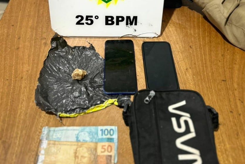 A ocorrência aconteceu por volta das 19h na Avenida Umuarama, no bairro Parque Industrial. De acordo com a PM, ao chegar no local indicado, os policiais abordaram um casal em frente a uma residência. Durante a ação, o homem, de 43 anos, jogou no chão uma porção de substância análoga ao crack, com aproximadamente 10 gramas. A mulher, de 20 anos, tentou esconder a droga com os pés, mas foi detida em flagrante.
