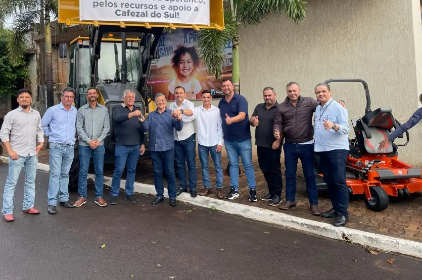 O deputado federal Dilceu Sperafico esteve em Cafezal do Sul para oficializar a entrega de dois novos equipamentos. A retroescavadeira e o trator cortador de grama giro zero agora passam a integrar a frota municipal.