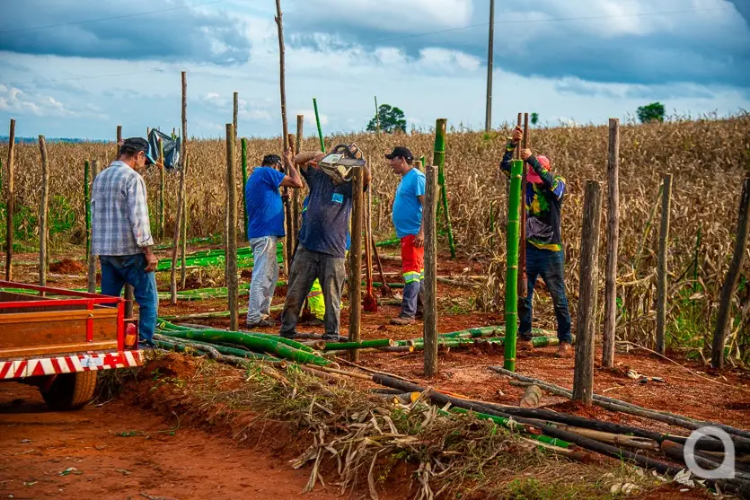 Parte do grupo que estava no acampamento na tarde desta sexta-feira se dedicava à montagem da estrutura para receber mais pessoas - Fotos e vídeo: Danilo Martins/OBemdito