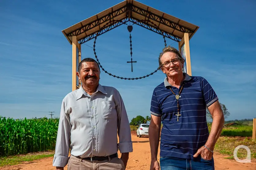Luiz e Isael diante do Portal do Rosário: obra feita a muitas mãos - Fotos: Danilo Martins/OBemdito