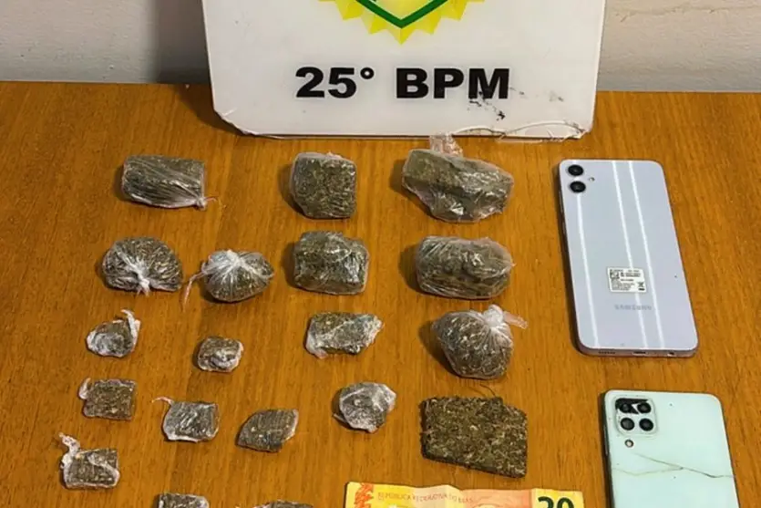Ao chegarem à residência, os policiais identificaram indícios de comércio de entorpecentes. Durante buscas no imóvel, foram encontradas diversas porções de substância análoga à maconha, já embaladas e prontas para a venda. O total apreendido foi de aproximadamente 200 gramas.