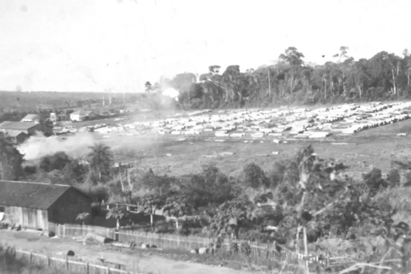 Esta era a Colônia Mineira, primeiro grupo de casas antes da fundação de Umuarama. Esse "bairro" reunia os precursores que vieram para trabalhar na construção das primeiras obras, como ruas, avenidas e praças, dando início à execução do projeto urbanístico da nova cidade do Paraná - Fotos exclusivas do arquivo histórico de Italo Fábio Casciola