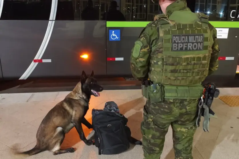 O flagrante ocorreu durante patrulhamento na rodoviária do município. Os policiais abordaram um ônibus da viação Garcia, com itinerário de Toledo, no oeste, a Jundiaí (SP). A abordagem contou com o apoio do cão de faro Nero.