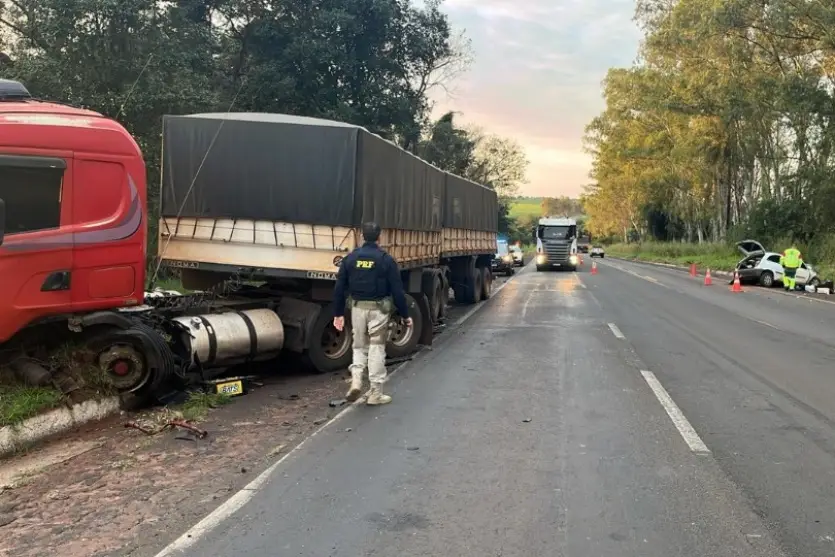Dois jovens morreram em uma colisão frontal entre um carro e um bitrem na BR-376, em Nova Londrina, noroeste do Paraná. O acidente ocorreu por volta das 4h35 desta sexta-feira (20), no km 40 da rodovia.