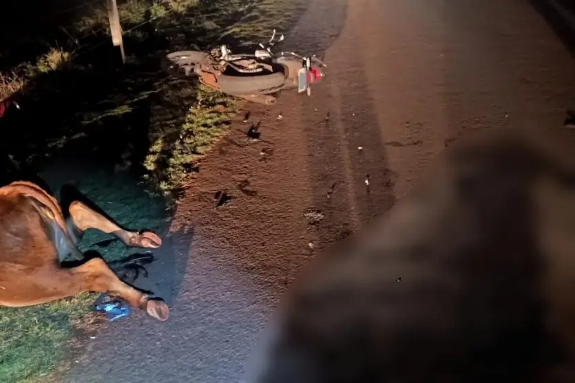Um motociclista de 55 anos ficou ferido após atropelar um bovino na zona rural de Iporã, no noroeste do Paraná, na noite de segunda-feira (23). O acidente aconteceu por volta das 19h30, no km 2 da Estrada Margareth. A colisão resultou na morte do animal e no encaminhamento do condutor ao hospital.