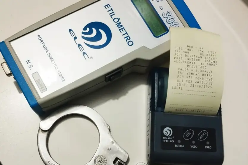 O condutor, identificado pelas iniciais J.C.S., dirigia um Volkswagen Bora com placas de Umuarama quando foi abordado por uma equipe da Polícia Rodoviária Estadual (PRE). Durante a verificação, os policiais o submeteram ao teste do etilômetro, que apontou 0,38 miligrama de álcool por litro de ar alveolar.