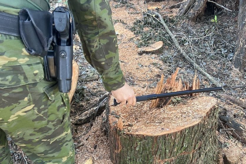 De acordo com os policiais, foi constatado o uso de maquinário para corte irregular de vegetação em área de reserva legal, o que caracteriza dano ambiental e dificulta a regeneração natural do ecossistema. Além disso, foi registrada a supressão de uma árvore em via pública, na calçada, sem a devida autorização dos órgãos competentes.
