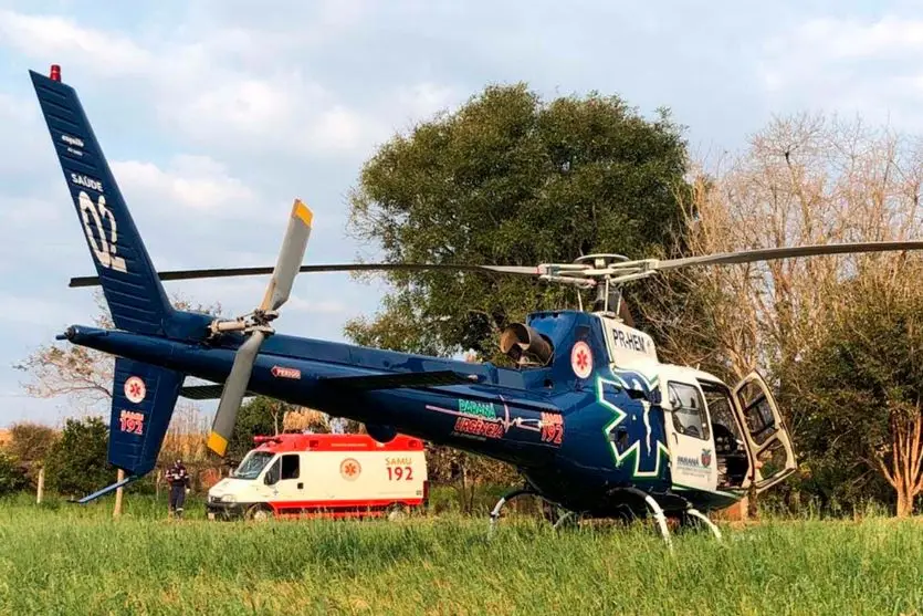 Helicóptero do Samu realizou transferência da criança em estado grave até Umuarama, após incidente em residência de Iporã (Foto Ilustrativa/Samu/AEN)