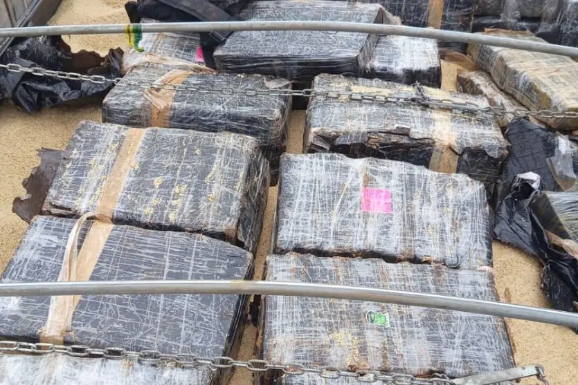A abordagem ocorreu no posto rodoviário da cidade. Após suspeita levantada pelos cães, os policiais iniciaram uma vistoria minuciosa no compartimento de carga e localizaram diversos tabletes do entorpecente camuflados entre os fardos.
