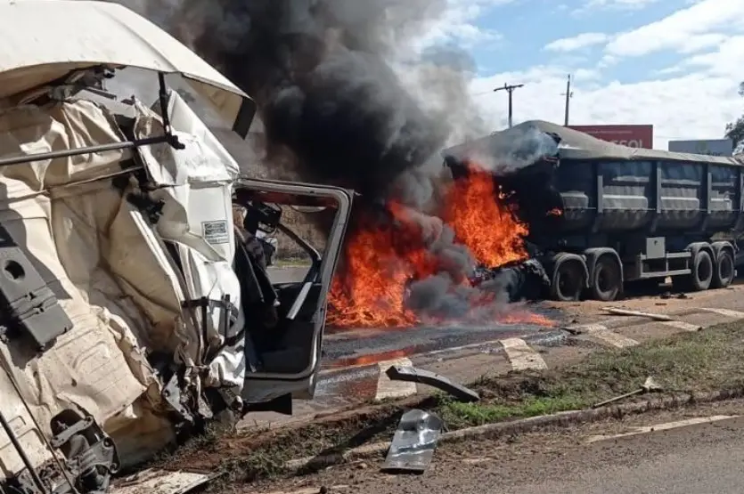 Em seguida, a cabine do caminhão que colidiu começou a pegar fogo. Conforme a Polícia Rodoviária, o motorista estava encarcerado, ou seja, preso nas ferragens da cabine.