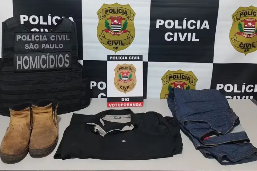O principal suspeito, o marido da mulher, foi preso na segunda (14); roupas usadas por ele no momento da morte, segundo a polícia (Foto Polícia Civil/Divulgação)