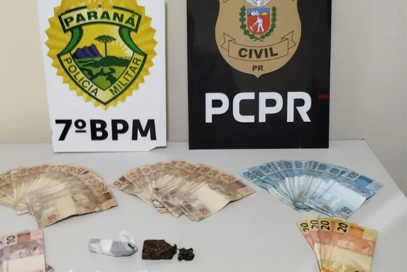 Substâncias entorpecentes, celulares e dinheiro foram encontrados com os suspeitos durante abordagens realizadas pela PM (Foto PMPR)