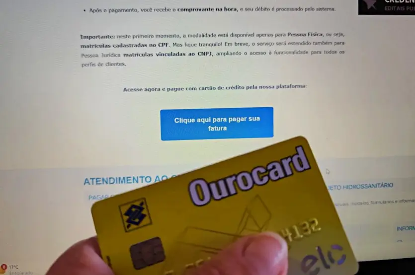 Inicialmente o pagamento com cartão de crédito está disponível apenas para pessoas físicas, ou seja, matrículas cadastradas no CPF. Num segundo momento, a companhia irá ampliar o serviço também para titularidades de pessoas jurídicas, com matrículas vinculadas ao CNPJ. Pessoas físicas e jurídicas têm hoje a facilidade do pagamento na modalidade pix, via WhatsApp (41) 99544-0115.