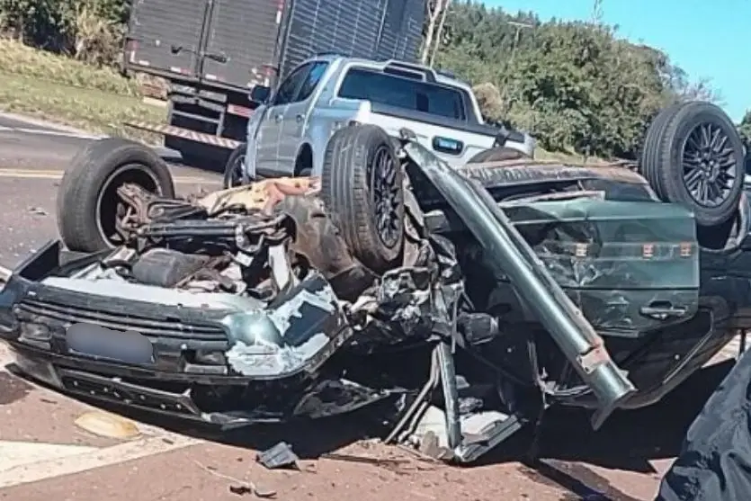 Um violento acidente foi registrado por volta das 13h desta sexta-feira (19) no trevo de acesso a Mariluz, no entroncamento das rodovias PR-180 e PR-468, na região de Goioerê.