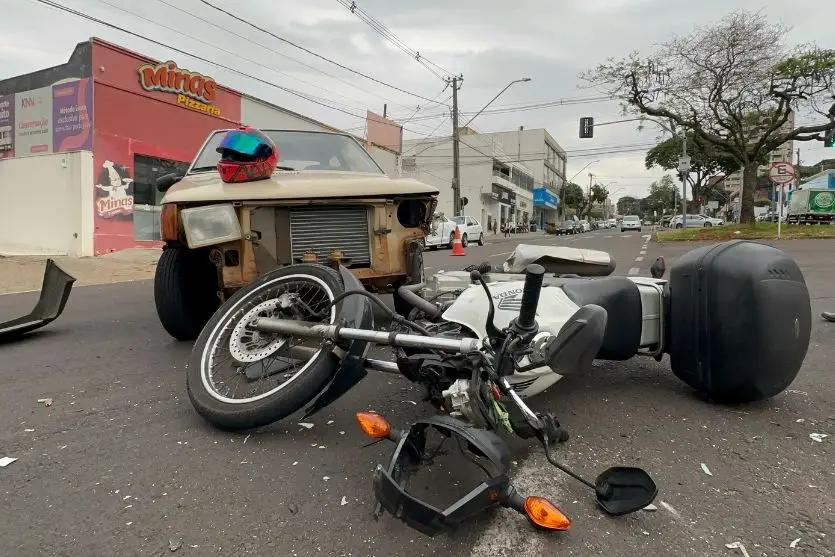 O carro estava estacionado e o motorista, de 48 anos, ao sair da vaga, não percebeu a aproximação do motociclista, que trafegava no sentido centro-bairro, ocasionando a colisão.