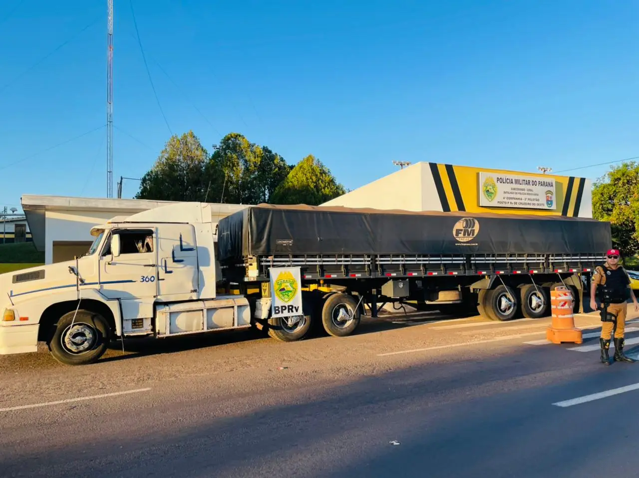 A apreensão aconteceu por volta das 15h. O motorista foi abordado em frente ao posto da PRE e apresentou uma nota fiscal de soja que seria entregue em Maringá. Contudo, dentro da cabine os policiais encontraram diversos produtos como iPad, celulares, ‘SKY gato’, fones de ouvidos e outros.