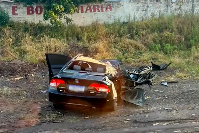 O motorista do caminhão tentou desviar para evitar o impacto frontal, mas o automóvel atingiu a lateral da carreta, arrancando o tanque de combustível e colidindo com o rodado do caminhão.