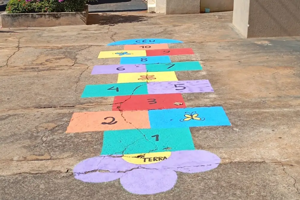 O projeto passou a ocupar os pátios escolares, com amarelinhas desenhadas no chão como símbolo e convite ao movimento. A atividade se estendeu também para fora dos muros da escola, chegando às calçadas de comércios locais, assim como, às praças públicas da cidade.