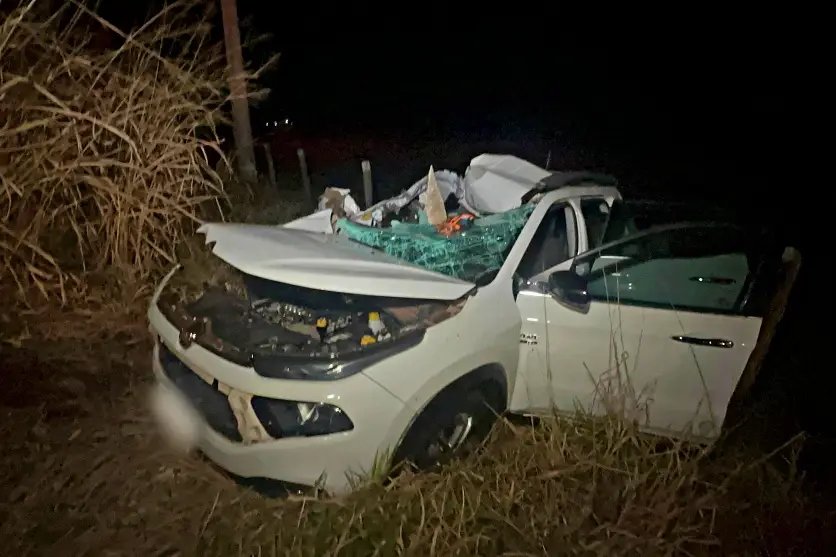 Ele assegurou que a colisão frontal não acontecesse, porém, não foi o suficiente para evitar o impacto lateral. A caminhonete atingiu a lateral dianteira e arrancou o rodado da carreta. A força da batida arremessou a Toro para fora da pista.