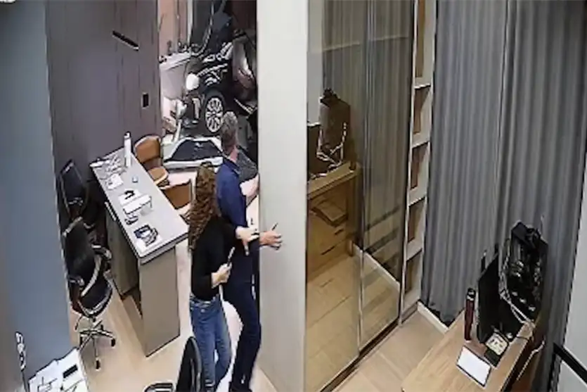 Vídeo mostra carro invadindo fábrica e deixando sócios em pânico em Umuarama