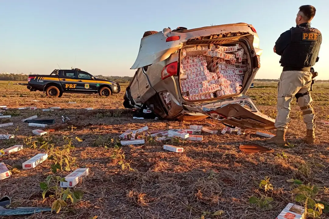 A Policia Rodoviária Federal (PRF) apreendeu, na tarde desta quinta-feira (29) 22.500 maços de cigarros contrabandeados transportados em uma Santa Fé roubada. Segundo a PRF o condutor desobedeceu a tentativa de abordagem na BR-467, em Toledo, e empreendeu fuga em alta velocidade.