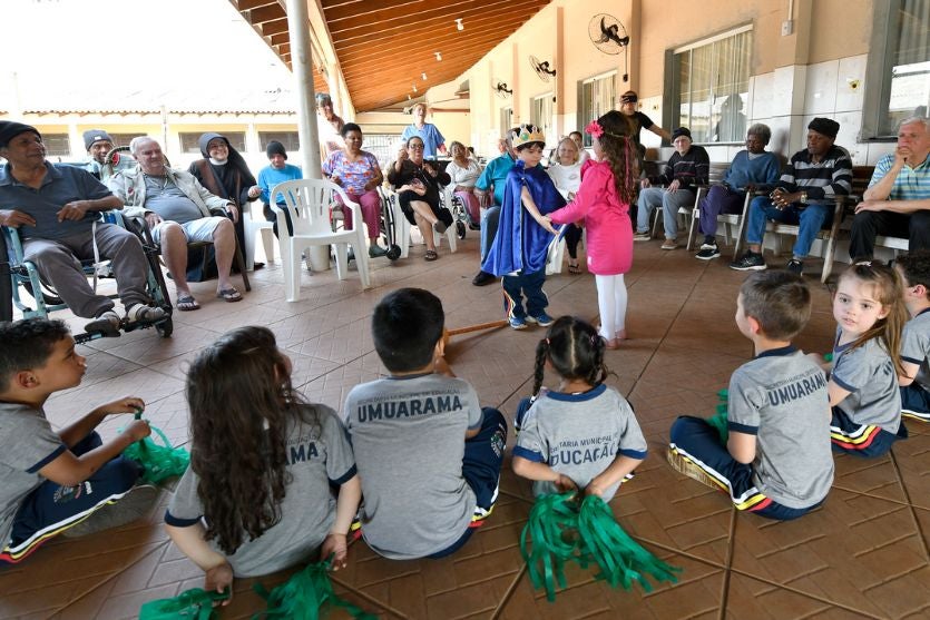 Além da entrega, os pequenos protagonizaram uma apresentação da cantiga “A linda Rosa Juvenil”, emocionando os presentes com a sensibilidade da encenação. A atividade contou ainda com a participação do cantor Matheus de Paula, convidado para interpretar músicas caipiras, despertando lembranças afetivas nos idosos.