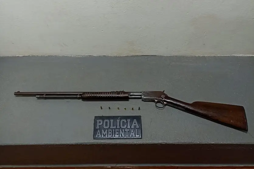 Durante a vistoria, os policiais localizaram uma carabina calibre .22 com seis munições intactas, sem registro ou autorização para porte ou posse. O homem foi imediatamente detido e encaminhado à delegacia junto com a arma e as munições apreendidas.