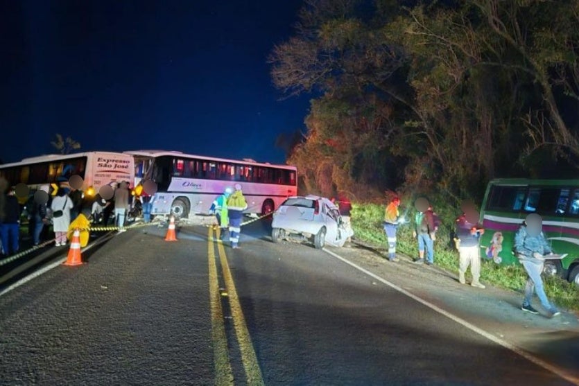 Acidente com automóvel e três ônibus deixa dois mortos e 13 feridos na BR-277
