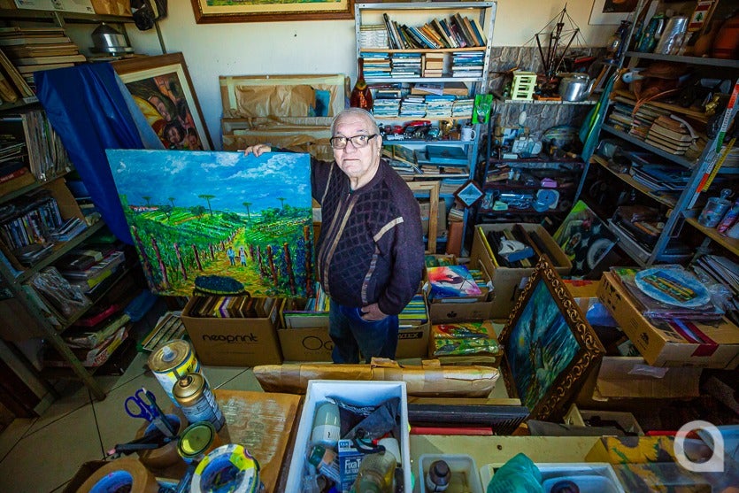 Segundo sua interpretação, cada tela é uma janela para o passado: “O universo pictórico que meu trabalho representa traduz a alma de quem viveu e ama profundamente sua terra”, orgulha-se.