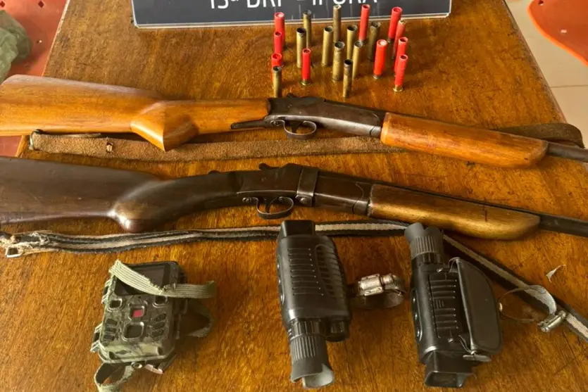 Durante o cumprimento dos mandados em Maria Helena, a Polícia Civil também prendeu o indivíduo em flagrante pelo crime de posse ilegal de arma de fogo de uso permitido. Com ele, os policiais apreenderam uma espingarda calibre .32, uma espingarda calibre .36 e 19 munições.