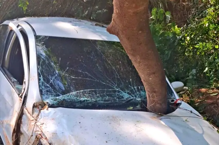 Após passar por uma área de vegetação baixa, o Gol chegou em um matagal e um tronco de árvore atravessou o veículo. Pelas imagens é possível ver que o tronco atingiu o para-brisa, do lado da motorista.