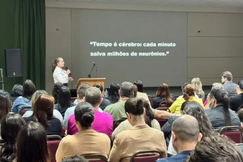 Durante sua fala, Renilde exibiu o vídeo de uma paciente que, após sofrer um AVC, recebeu o protocolo medicamentoso no tempo adequado, recuperando-se sem sequelas significativas. O caso emocionou os presentes e reforçou a mensagem central do treinamento: a rapidez no atendimento salva vidas.