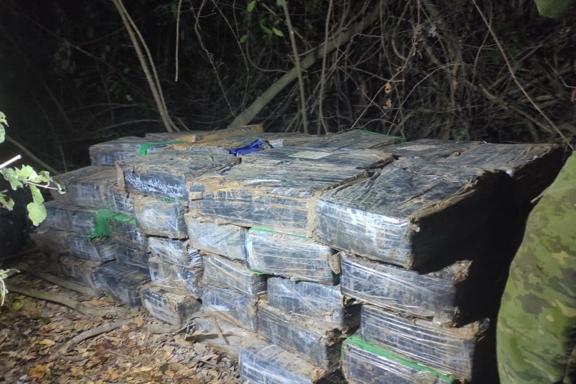 Durante as buscas, os militares encontraram em meio à mata diversos fardos cobertos por lona plástica. Dentro deles estavam tabletes de maconha, envolvidos em fitas plásticas. A droga foi pesada, totalizando 1.059 quilos.