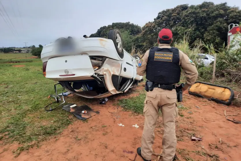 Um capotamento em Porto Rico deixou três pessoas feridas na manhã de domingo (24), por volta das 8h50, no km 8 da PR-576. O acidente envolveu um GM/Corsa que, após perder o controle, saiu da pista e capotou às margens da rodovia.