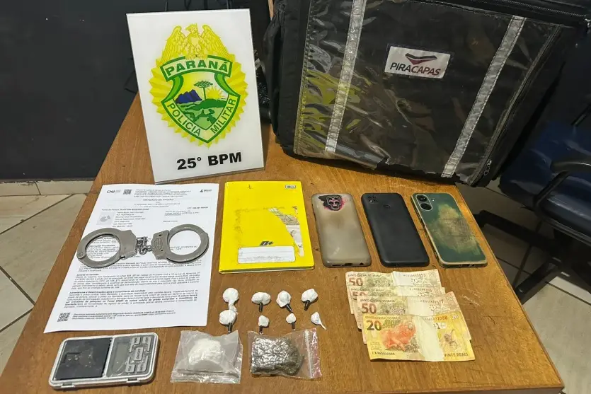 Em buscas na residência indicada pelo suspeito, foram apreendidos mais porções de cocaína, maconha, uma balança de precisão, anotações, além de uma motocicleta e uma bolsa usadas para o transporte. O caso foi registrado como delivery de drogas e todos os envolvidos foram encaminhados à Delegacia de Umuarama para os procedimentos cabíveis.