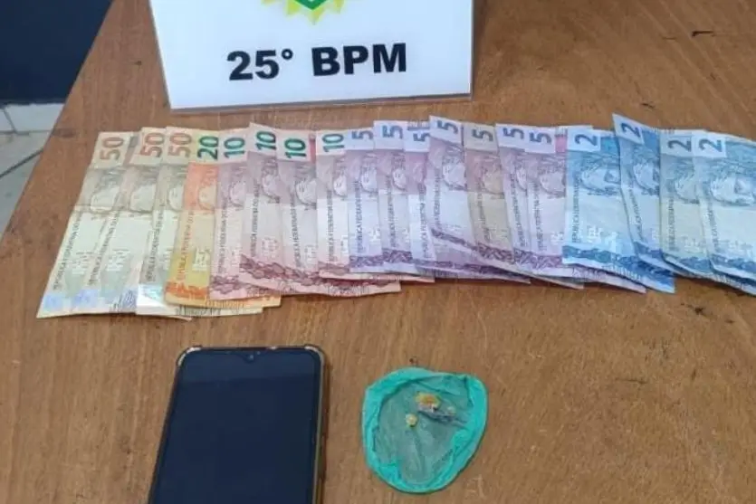 No local, os policiais visualizaram três homens sentados, em atitude considerada suspeita. Durante a abordagem, um deles, de 18 anos, estava com R$ 253 em notas diversas, enquanto um adolescente de 16 anos escondia em uma das meias 0,6 grama de crack, além de portar um aparelho celular.