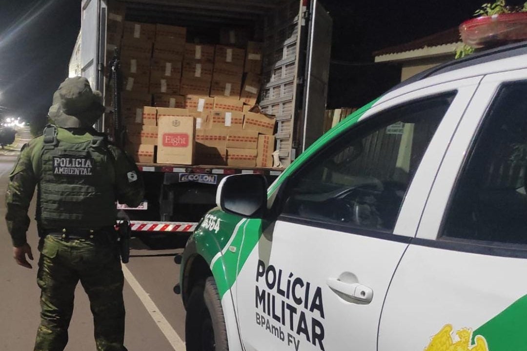PMAmb persegue e apreende caminhão lotado com cigarros, em Icaraíma