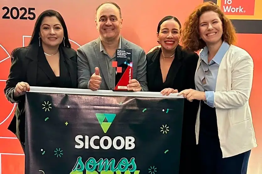 A cerimônia de premiação aconteceu no Viasoft Experience, em Curitiba, na noite da última sexta-feira (5) e o Sicoob Arenito foi representado pelo diretor-financeiro Flavio Ferraresi, pela especialista em Gestão de Pessoas Jessica Cristina Antoniel, pela gerente do Ponto de Atendimento de Cidade Gaúcha Elisangela Alves Pereira e pela especialista em Marketing Priscila Freire Martins Rosa. “Foi um momento de bastante emoção para toda família Sicoob Arenito, já que se trata da conquista de uma das mais importantes honrarias concedidas no Brasil pela GPTW”, comentou Ferraresi.