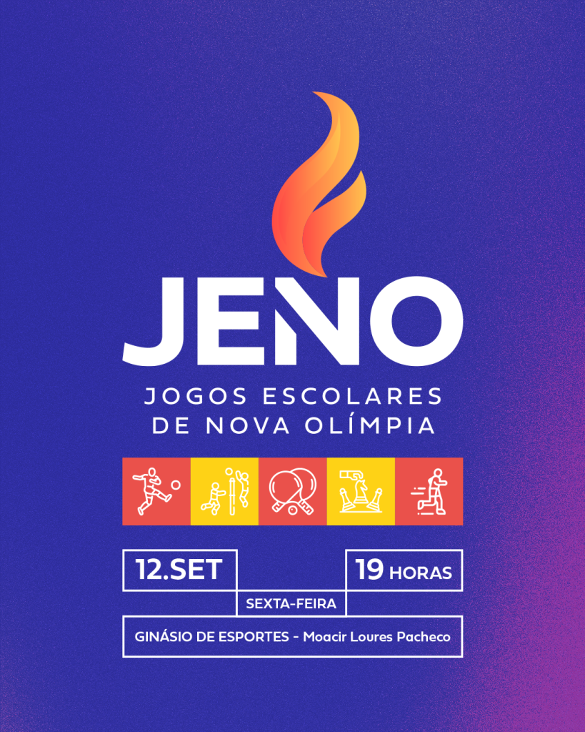 Os Jogos Escolares de Nova Olímpia (Jeno) começam nesta sexta-feira (12), às 19h, no Ginásio Municipal, e devem movimentar a cidade durante as competições, integração e apresentações culturais. A programação inclui disputas em modalidades como futsal, voleibol, xadrez, tênis de mesa, atletismo, assim como, gincanas e handebol adaptado.