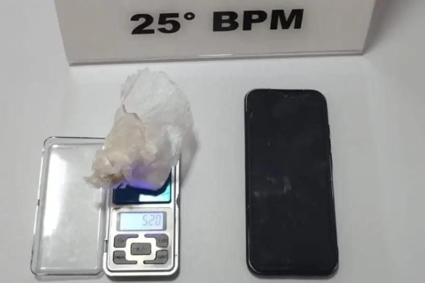 Após acompanhamento tático, os policiais abordaram os dois cerca de um quilômetro depois. No local onde o invólucro havia sido descartado, foi encontrado o material, que continha 52 gramas de substância análoga à cocaína. Um celular também foi apreendido.