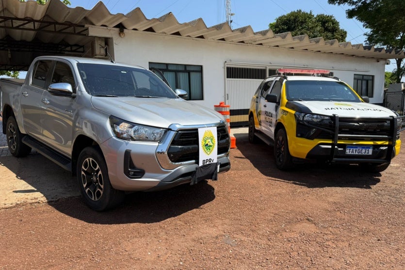 Na inspeção, os policiais constataram que a Hilux abandonada ostentava placas clonadas do Mercosul e possuía alerta de furto qualificado registrado em 24 de janeiro de 2025, em Foz do Iguaçu. As placas originais pertencem a Nova Fátima. O veículo estava sem os bancos traseiros e do passageiro dianteiro, indício de preparação para transporte de ilícitos. No interior, também foram encontrados um rádio comunicador da marca Yaesu/FT-2980 e dois pares de placas automotivas.