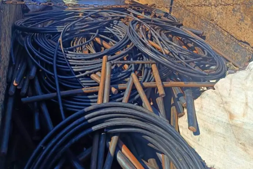 De acordo com a nota, os policiais chegaram ao endereço após denúncias anônimas indicarem a movimentação suspeita em um caminhão. Havia pessoas carregando o veículo com fios de cobre.
