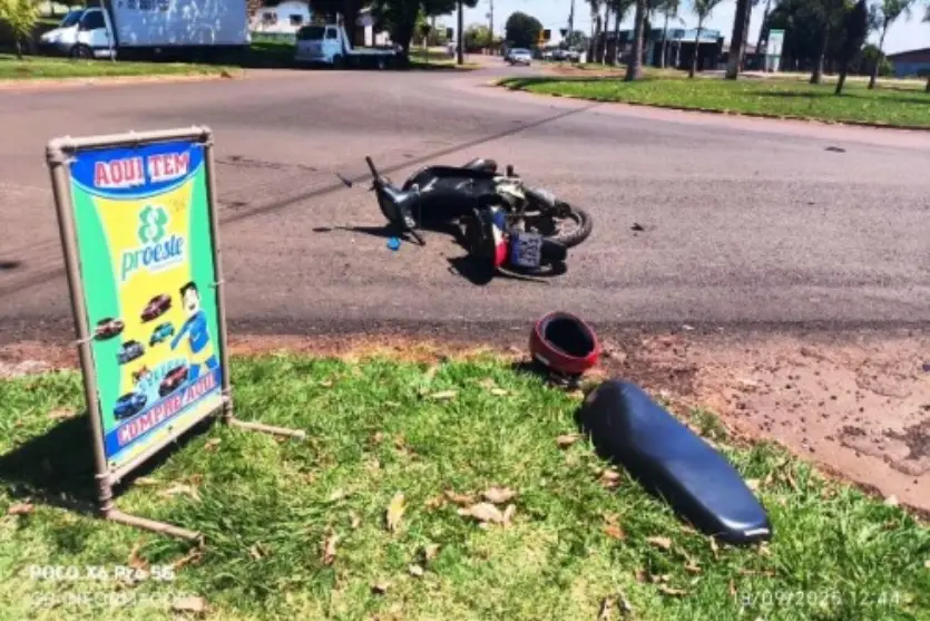 Uma mulher teve a perna amputada após um grave acidente em Cafelândia no início da tarde de quinta-feira (18). A colisão envolveu um veículo Astra e uma motoneta Honda Biz na Avenida Marechal Lott, cruzamento com a rua Munhoz de Melo, na rotatória do Posto Delta.