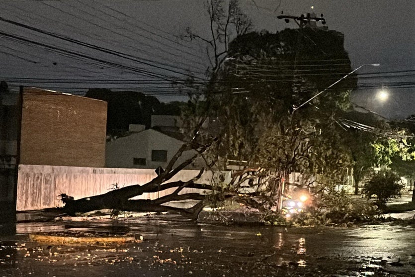 Em Umuarama, houve também o registro de uma queda de árvore no trecho da avenida Pernambuco em cruzamento com a avenida São Paulo, próximo ao Colégio Malba Tahan. Durante a queda, a árvore atingiu os fios de poste de energia no local, o que resultou no risco de queda do poste. Veja o vídeo: